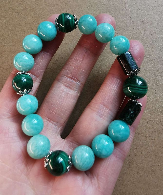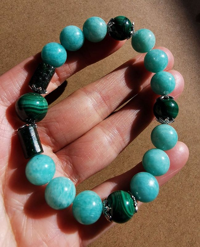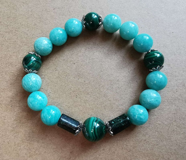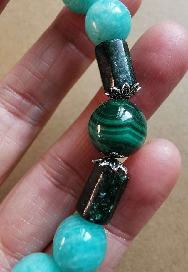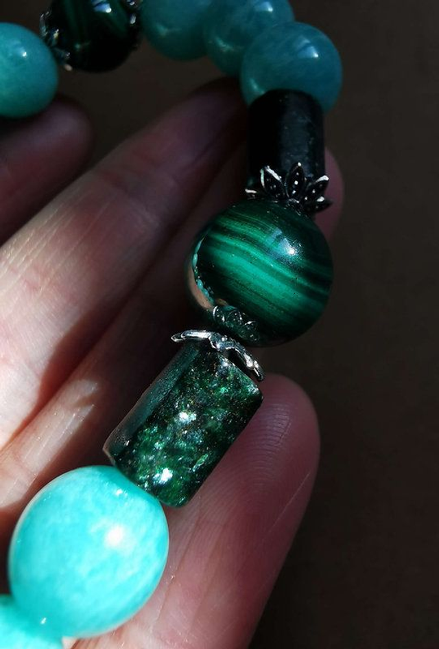 Pierres : Amazonite 5A, Malachite et Émeraude