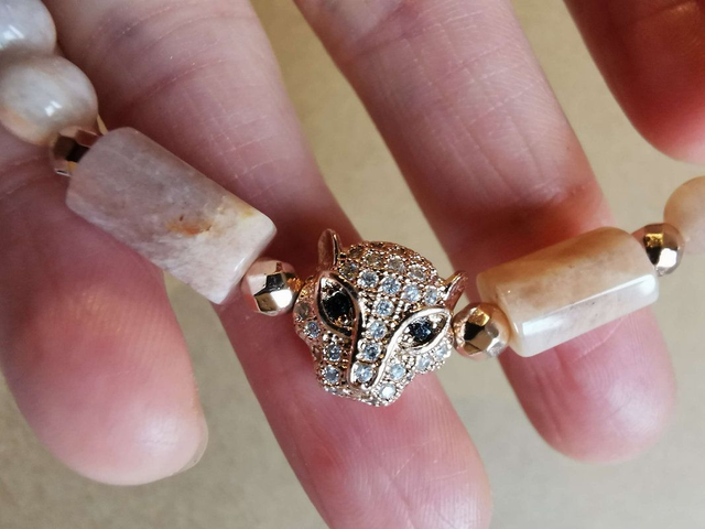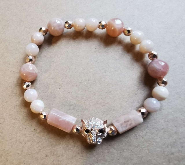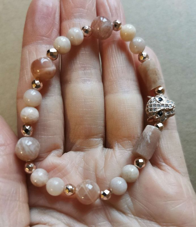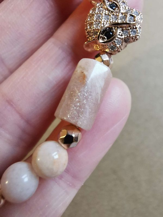 Bracelet en Pierre de soleil - Ornement Panthère dorée - zircons
